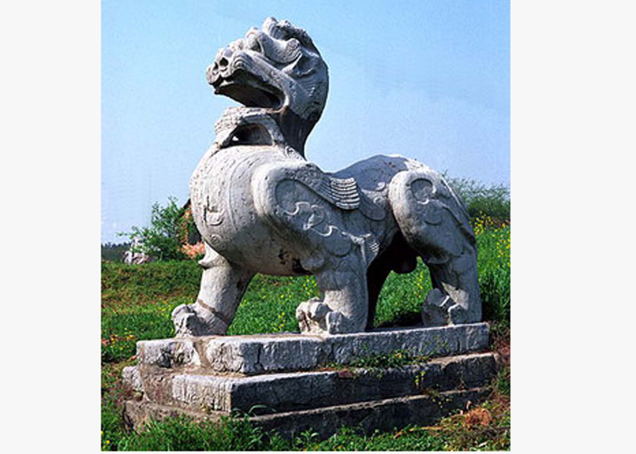 南朝陵墓雕刻与陶俑在今南京郊区和句容、丹阳县境内,分布着30余座宋、齐、梁、陈四个朝代的帝王、贵族陵墓,墓前依一定制度树有神道石柱、石碑、石兽等。陵墓前石兽一般通称辟邪,形如狮子而有翼,关于石兽的命名,有三种意见。第一种意见认为,头上双角者称辟邪,独角者为天禄,无角者为符拔;第二种认为双角者为天禄,独角者为麒麟,无角者为辟邪;第三种则认为双角和独角者均称为麒麟,无角者称为辟邪。这些石兽形体硕大,气度恢宏,形象虽源于狮子,但形体极尽夸张,是传说中神异的瑞兽。