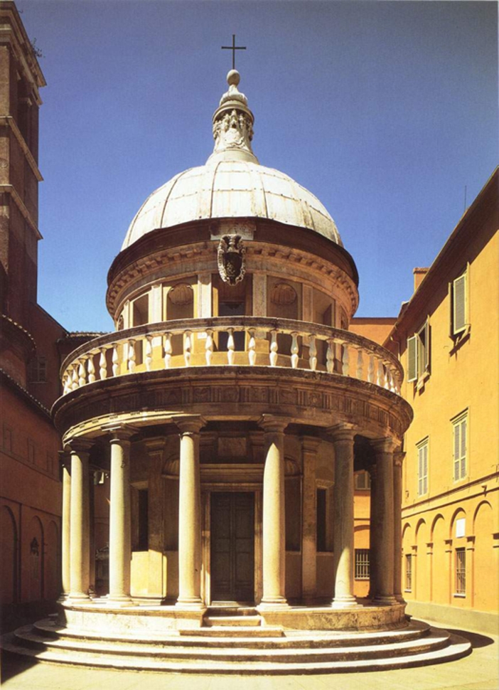 勃拉曼特在这里所追求的不是简单地模仿古代建筑,而是在精神气质上创造出与古典建筑具有同等意义的现代纪念性建筑,他超越了古人,因此这座建筑可称之为文艺复兴盛期的纲领性作品,可谓建造新圣彼得大教堂的先声。