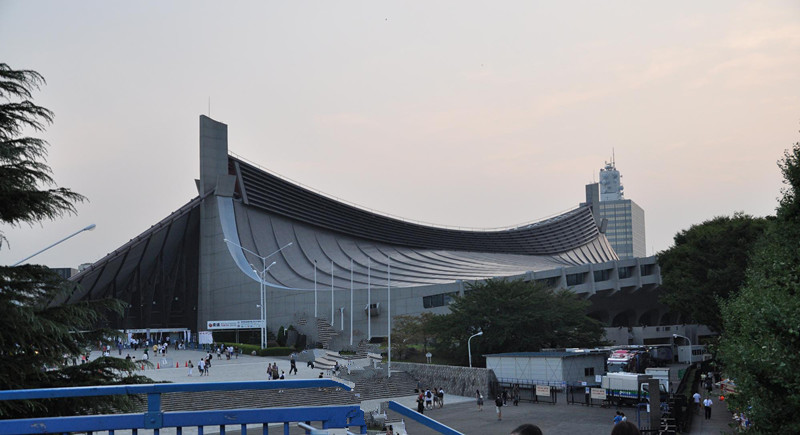 丹下健下是日本当代著名建筑设计家。他的代表作是为1964年东京奥运会设计的最大体育馆——代代木体育馆。该建筑占地91公顷,游泳馆和球类馆的屋顶采用先进的悬索结构建造,球类馆平面呈圆形,有喇叭形入口。