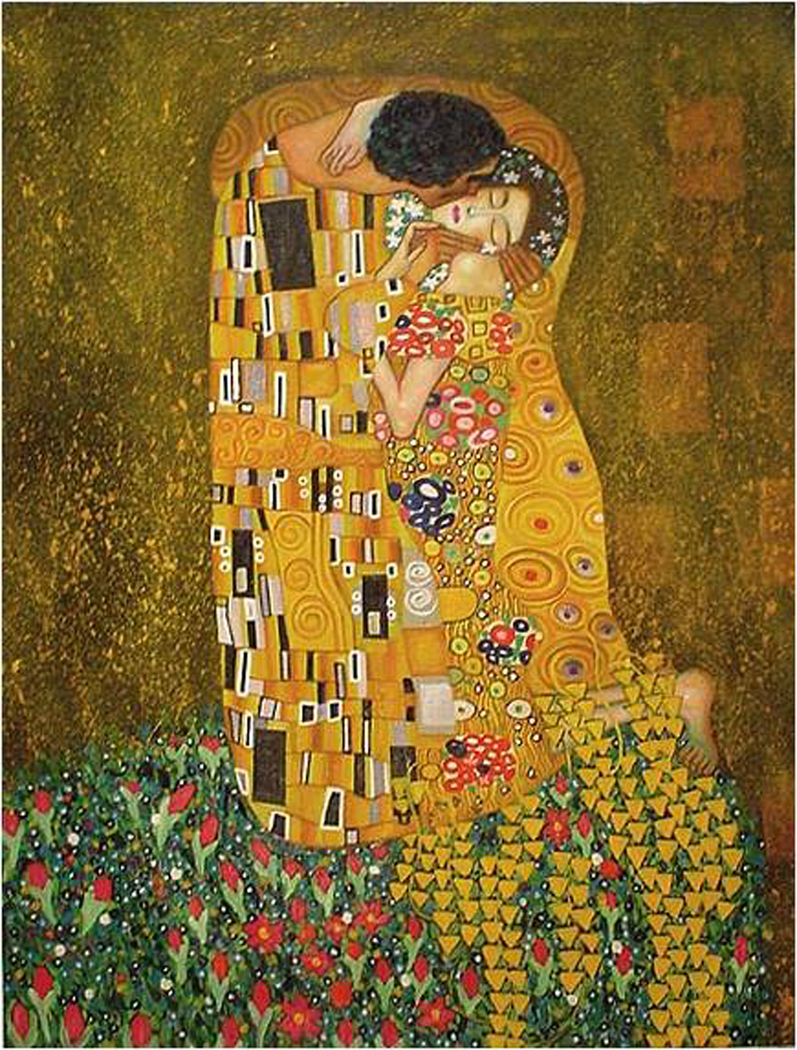 克里姆特是“维也纳分离派”以绘画最出名,风格上同样采用大量简单的几何图形为基本构图,采用非常绚丽的金属色,如金色、银色、古铜色,加上其他明快的颜色,创造出非常具有装饰性的绘画作品。