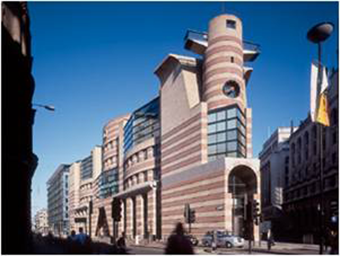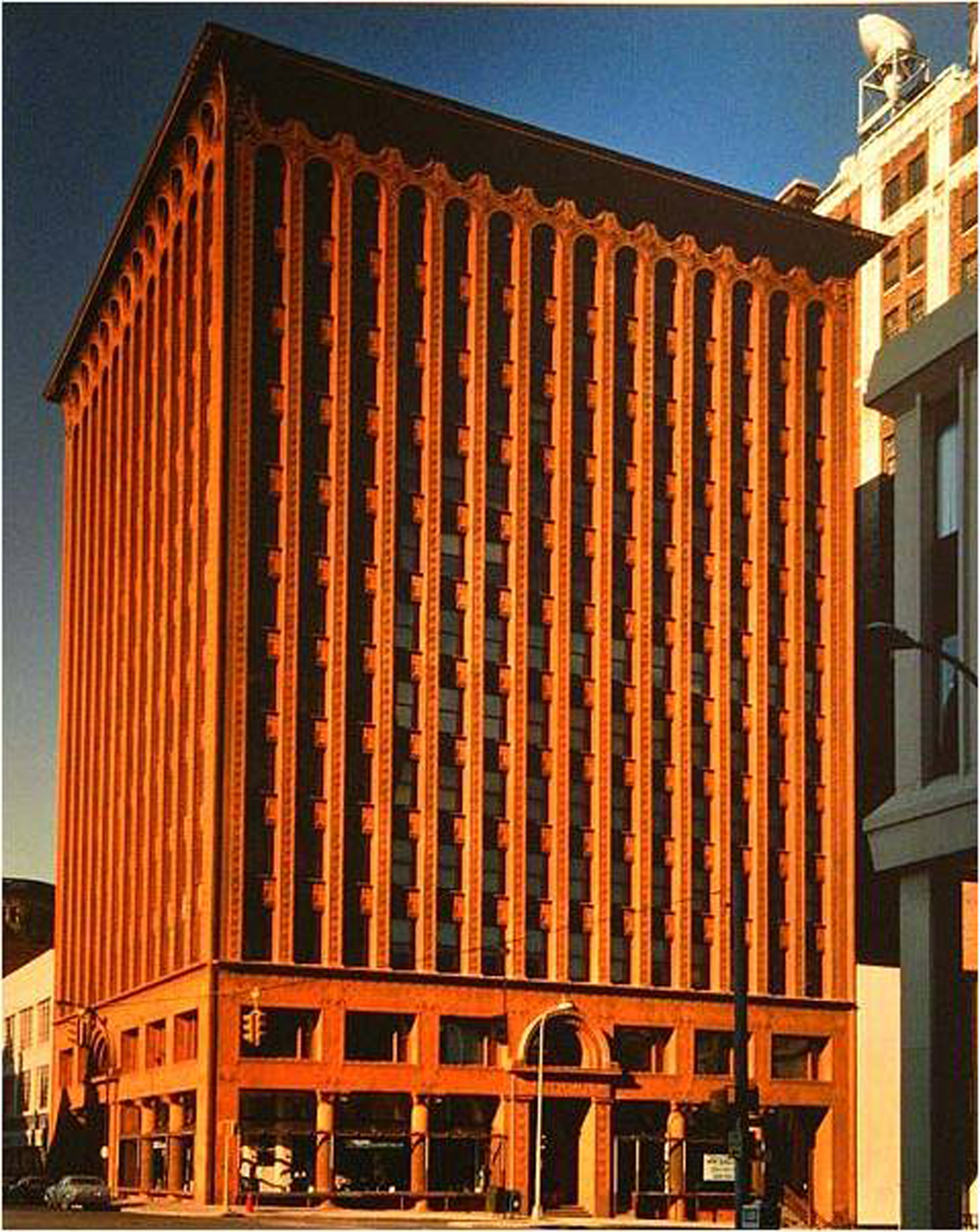 为后现代主义建筑中规模最大、最负盛名的代表作。该建筑是使用了混合的建筑语言的折中主义作品,古典主义融进了现代高层建筑,借用了15世纪文艺复兴意大利教堂形式,摩天大楼似一高脚柜,巴洛克的堂皇与现代商业化的POP风格融为一体,巧妙结合了前人作品的不朽性和象征意义。