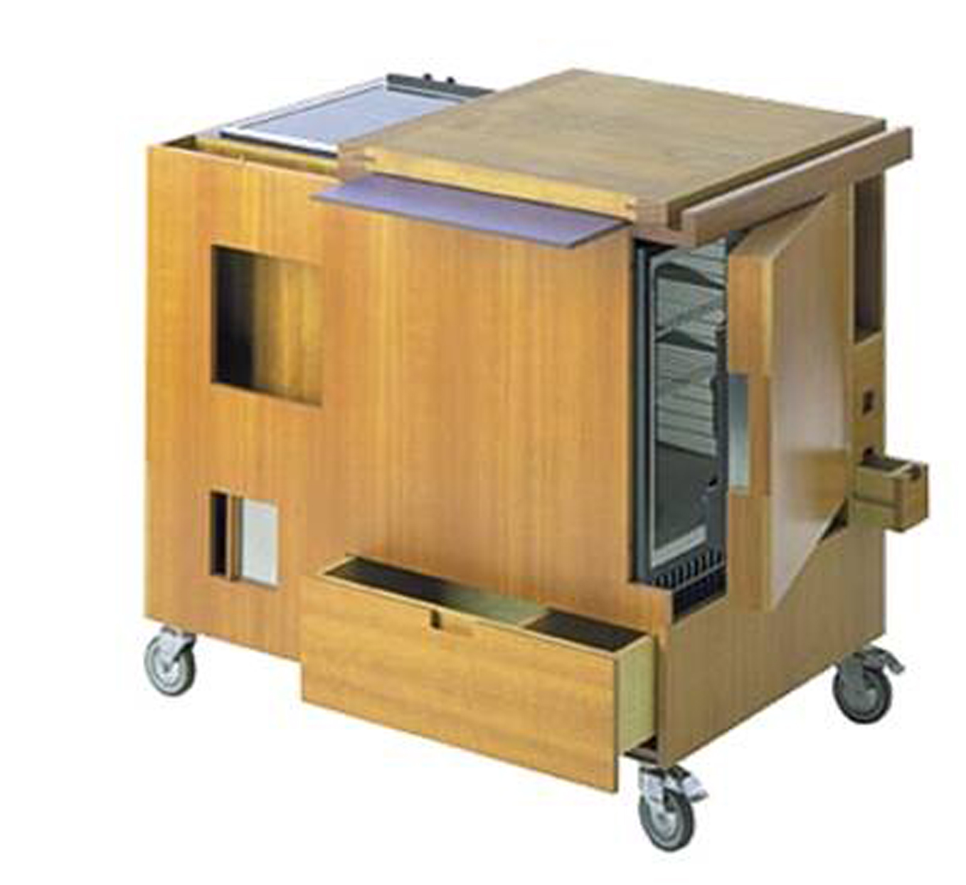 一个滚动的家庭机器人,集所有厨房功能于一身。在半平方米的体积中包括了所有最重要的设备:冰箱、电炉、放六人锅盘的抽屉和柜子。设计为了解决经济繁荣时期中产阶级家庭中节省空间的问题,也反映了当时“紧凑居住”的主题对六十年代典型的航天船舱模式进行综合考虑的愿望。