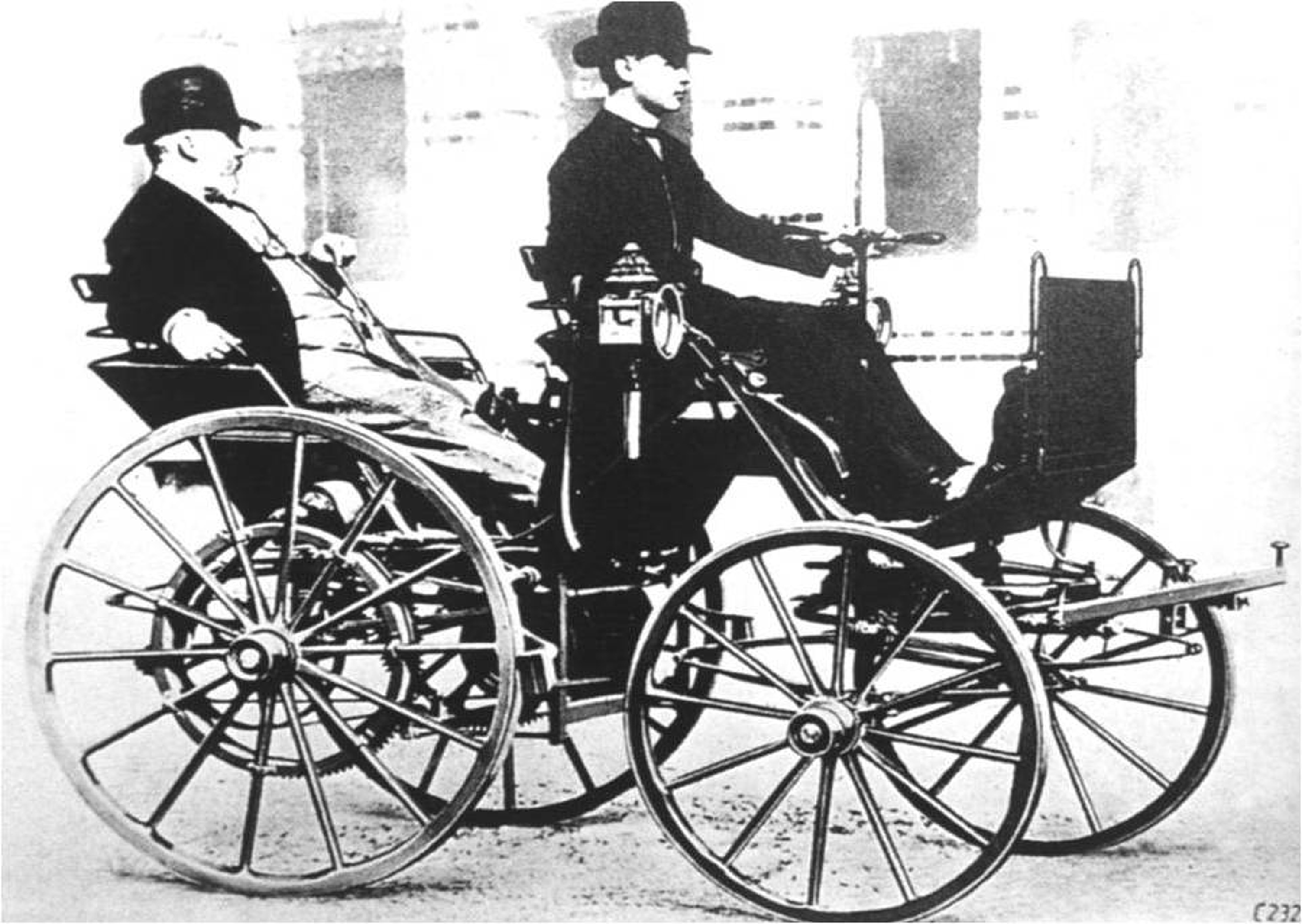 图4 -81 1886年德国人卡尔•本茨成功地制成了第一辆用汽油内燃机驱动的汽车
