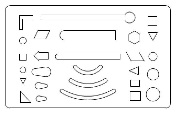 擦图片是用来帮助擦掉多余线条或错画线条的工具,如图2-17所示。使用时,将擦图片上的缺口对准要擦的线条用橡皮擦拭,这样可不影响图形中相邻的其他线条。