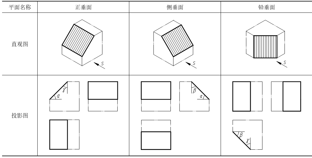 表3-3 投影面垂直面