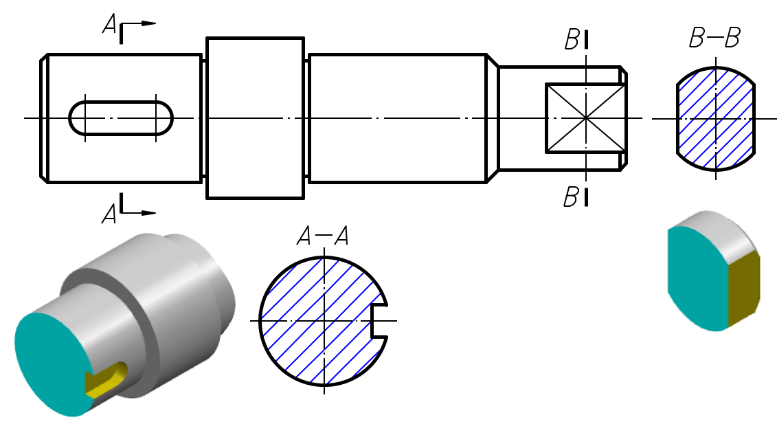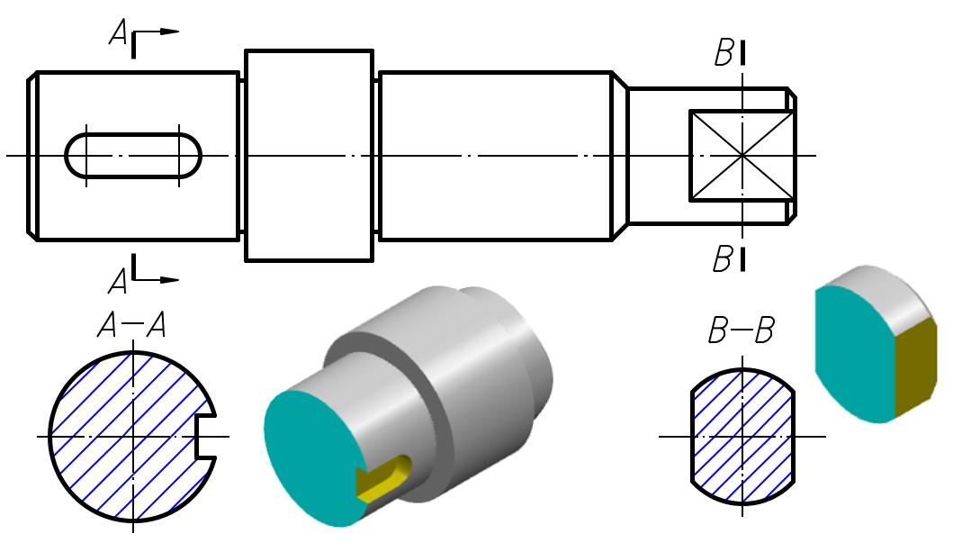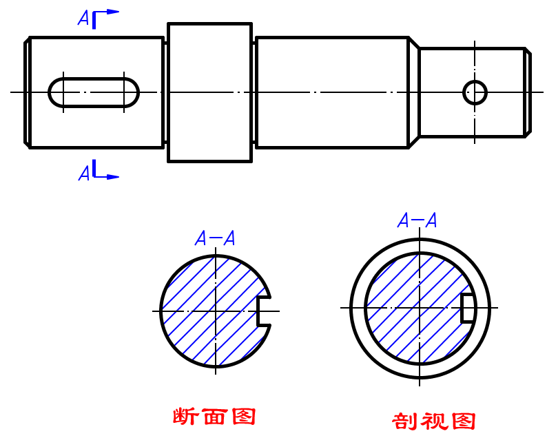 在断面上画上剖面符号。断面图常用于表达轴上槽或孔的深度及机件上肋板、轮辐等的断面形状。