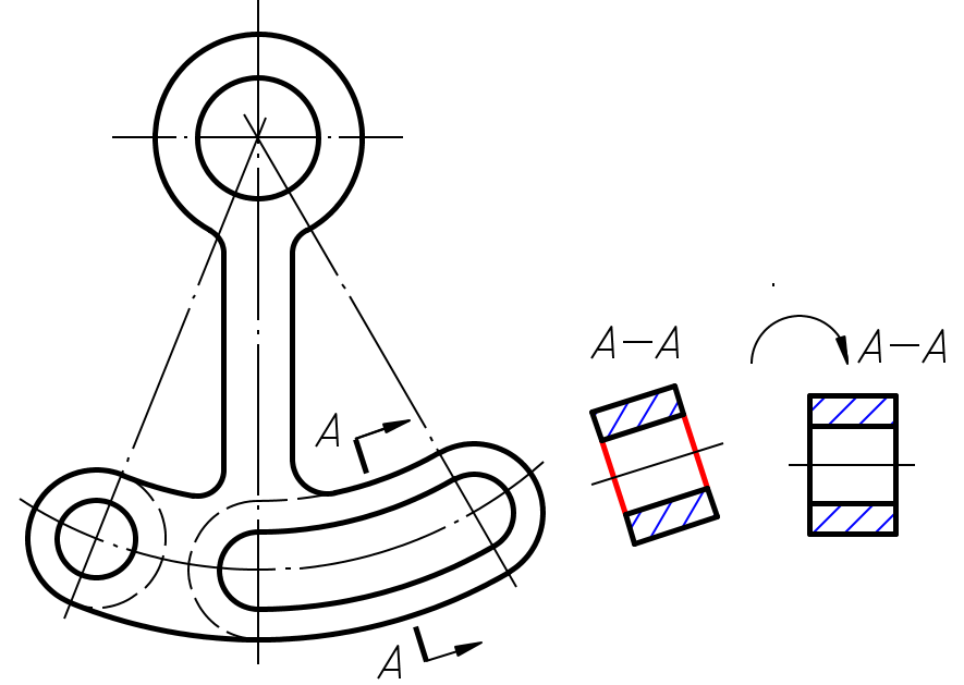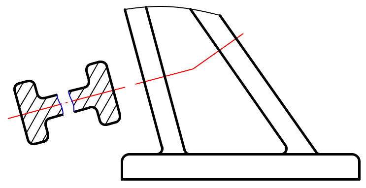 (3)由两个或多个相交剖切平面切出的移出断面图,剖切面分别垂直于所切部分的轮廓线,断面图中间应以波浪线断开。