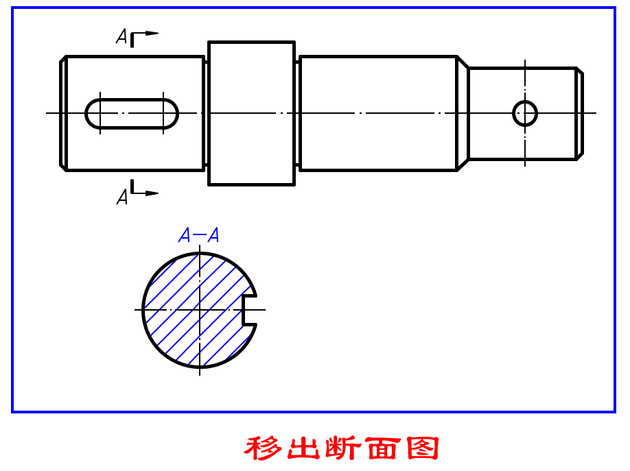 (1)移出断面图的轮廓线用粗实线绘制。移出断面图尽量配置在剖切符号的延长线上。