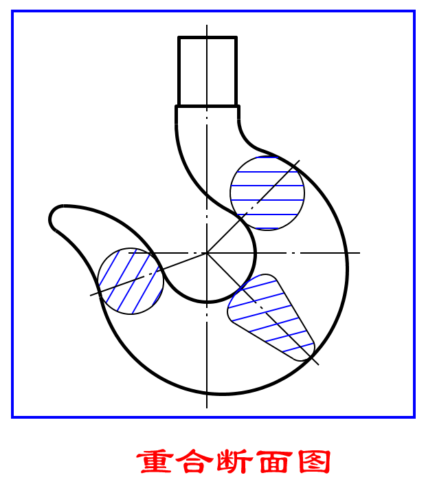 (2)当视图的轮廓线与重合断面的图形相交或重叠时,视图中轮廓线仍应连续画出,不可间断。