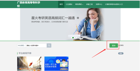 1、登录学校网址: https://gxtznn.mh.chaoxing.com