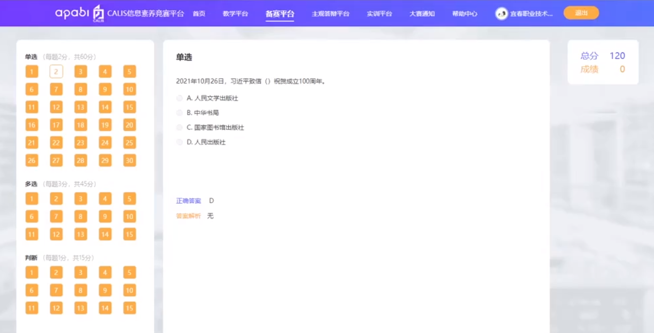 本次比赛沿用21年七省赛的比赛平台,学生注册后需本校图书馆的竞赛管理员账号(4月20日报名截止后万方技术程工@万方-程志杰 统一开始开设账号)进行审核通过并拉进相应的考场,学生方能进行练习与考试。 首 页:http://match.wf.pub/#/home/list
