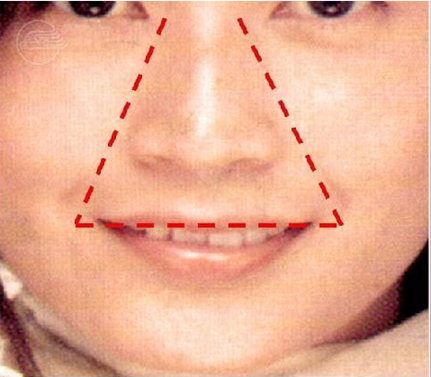危险三角:鼻根到口角之间的三角形区域,面静脉通过其属支与颅内的海绵窦交通口角平面以上,面静脉无静脉瓣,此处面部感染,易波及颅内。