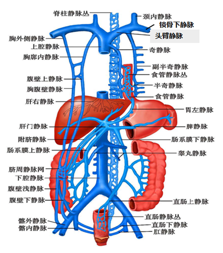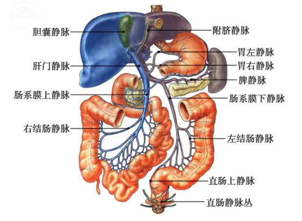 ③ 收集范围:(除肝以外不成对的脏器)自食管腹段至直肠腹盆部的消化管道及脾胰和胆囊的静脉血。