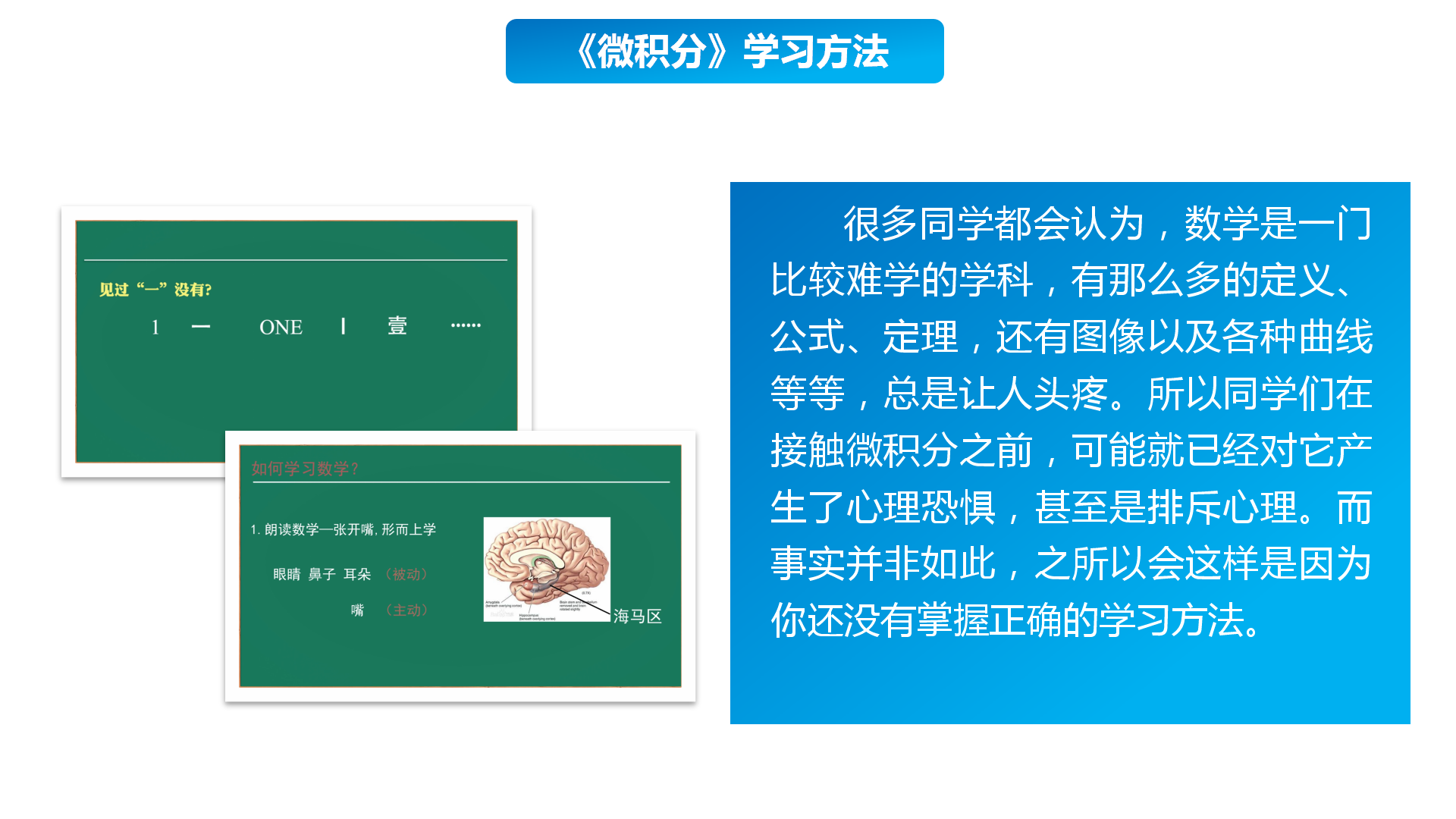 在上一世纪五、六十年代,数学专业有专门教学生做习题的习题课,其它理工科的许多专业也安排有固定时间的高等数学辅导课。现在,由于课堂教学时数的减少,以前那种教学形式在很多学校都已经不存在了。考虑到这种教学形式的改变和为了帮助学生做习题,教科书中在适当的地方也讲了学习微积分的方法,并为许多习题做出了提示或解答。微积分的习题成千上万,有些习题可能是从后继专业课程或论文中摘选出来的,你暂时不会做它是正常现象,不足为奇。做计算题时有答案可以核对一下,而做证明题时,没有答案(有的题会有提示),这与做计算题相比要困难一点。不过,它们也不会太难,因为它们都是教科书中相关章节之后的练习,那一定是让你用该章节的概念和结论,有时还需要你通过(与学过的其它知识的)联想,运用推理来完成它。评判一个证明(论证),当然要先看其中是否有逻辑错误(“东拉西扯”、“张冠李戴”、“指鹿为马”)。写得太多(“舍近求远”、“拐弯抹角”)或写得太少(理由不充足)都不算是一个好的证明。