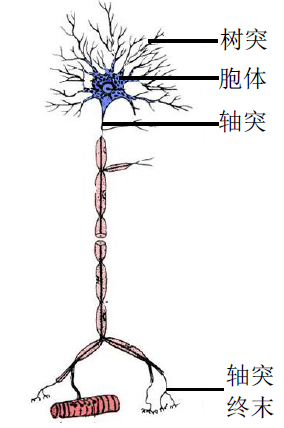 神经元的形态大小不一,但都可分为胞体、树突和轴突三部分。