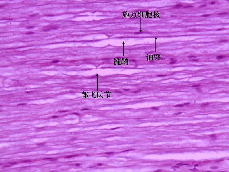 图4 周围有髓神经纤维光镜图(纵切面 HE染色)