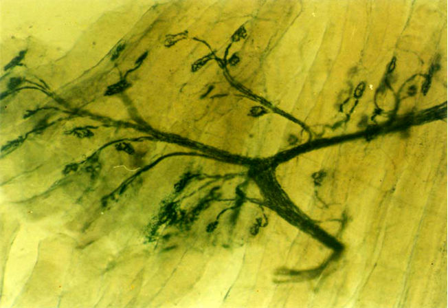 图8 运动终板光镜图 (氯化金染色)