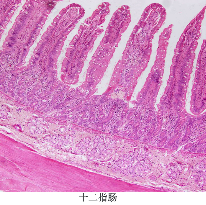 为疏松结缔组织,含较多血管和淋巴管。十二指肠的黏膜下层内有十二指肠腺(duodenal gland),为复管泡状的粘液腺,其导管穿过粘膜肌开口于小肠腺底部。此腺分泌碱性黏液(pH8.2~9.3),可保护十二指肠黏膜免受酸性胃液的侵蚀。最近研究表明,人十二指肠腺尚分泌尿抑胃素(urogasterone),释入肠腔,具有抑制胃酸分泌和刺激小肠上皮细胞增殖的作用。