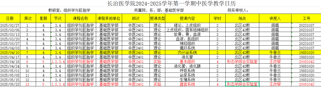 《组织学与胚胎学》(2024级检验、康复、中医专业)