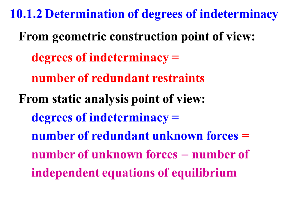 9.1 Statically indeterminate structures and degrees of indeterminacy