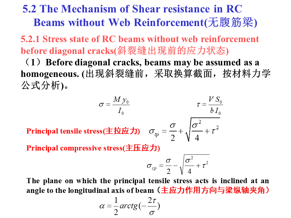 5.2 The Mechanism of Shear resistance in RC Beams without Web Reinforcement