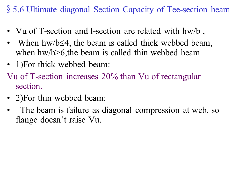 5.6 Ultimate diagonal Section Capacity of Tee-section beam