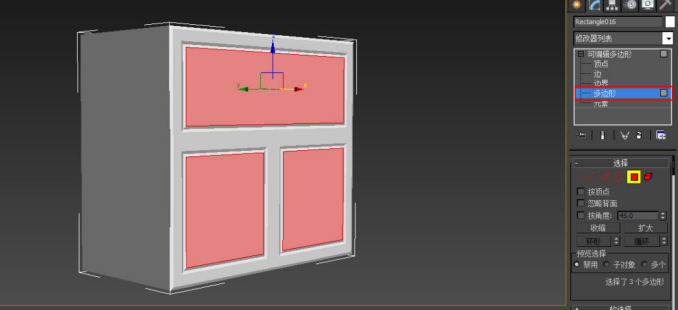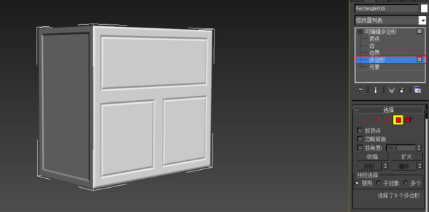 图2-43 多边形层级下选择柜体正面