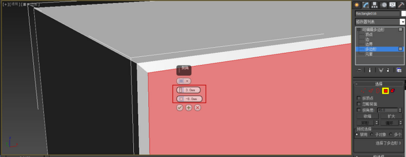 将“边”层级重新切换至“多边形”层级,按Ctrl键同时选择中间3个面,右击选择