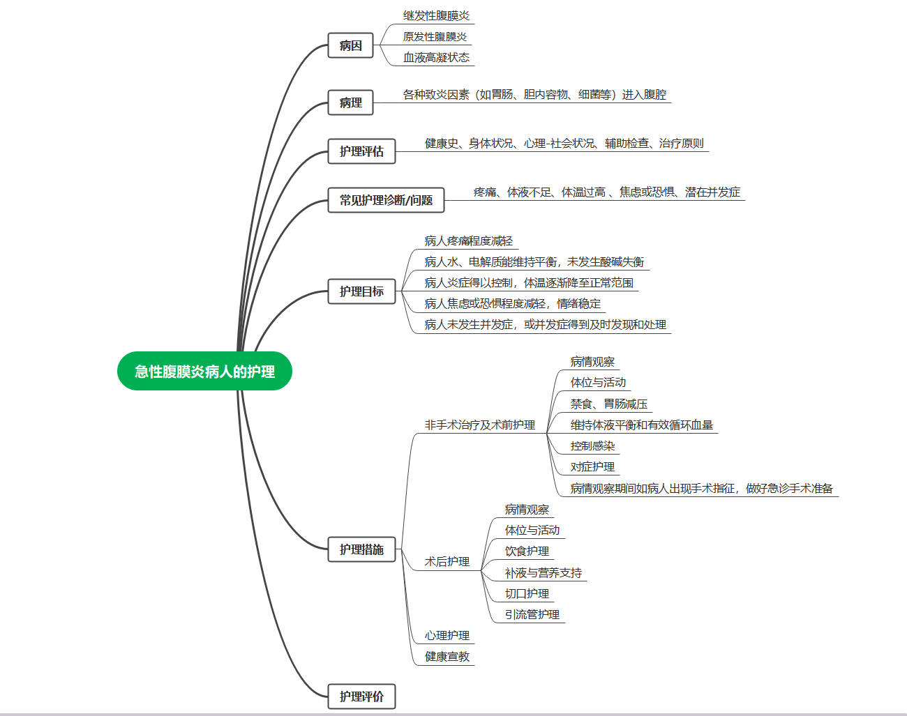 1、掌握急性腹膜炎的症状、体征和护理措施