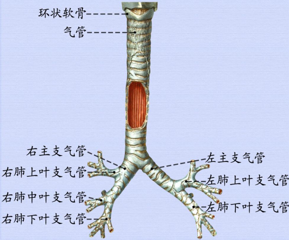 呼吸系统由呼吸道和肺组成,呼吸道是传送气体的管道,包括鼻、咽、喉、气管和左右主支气管等器官,肺是容纳气体并进行气体交换的器官。★★★