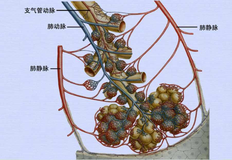 肺有两套血管:肺的功能性血管为肺动脉和肺静脉;营养性血管为支气管动脉和支气管静脉。★★★