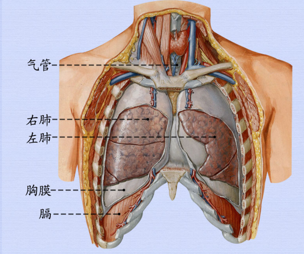 胸膜是光滑的浆膜,在肺表面的胸膜称脏胸膜,在胸腔内面的胸膜称壁胸膜。壁胸膜分四部分:膈胸膜、纵隔胸膜、肋胸膜、胸膜顶。★★★