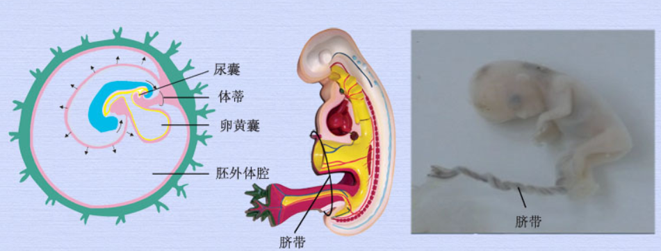 临床联系:脐带过短,分娩时易引起胎盘过早剥离,引起大量出血;脐带过长,易缠绕胎儿四肢或颈部,可致局部发育不良,甚至胎儿窒息死亡。