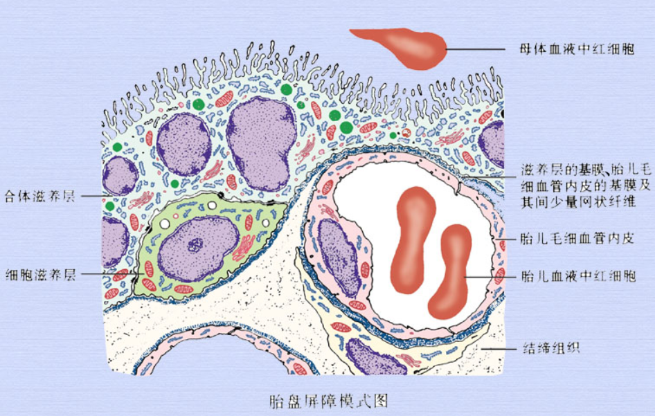 2)屏障作用-阻止母体血液内的大分子物质和细菌进入胎儿。