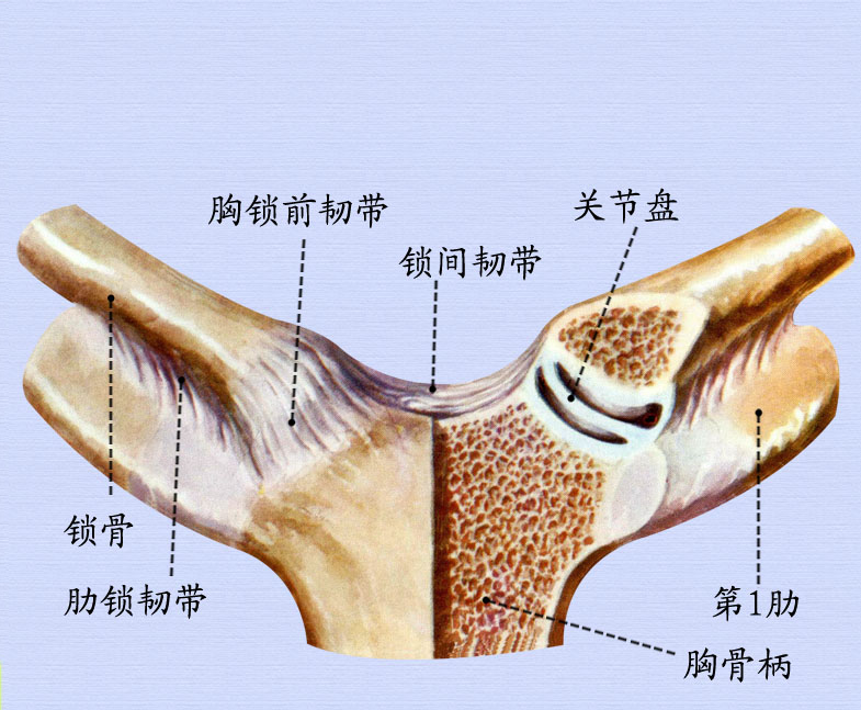 1.胸锁关节和肩锁关节:胸锁关节是上肢与躯干之间唯一的关节,由锁骨的胸骨端、胸骨锁切迹和第1肋构成;肩锁关节由肩胛骨肩峰和锁骨肩峰端构成的微动关节。