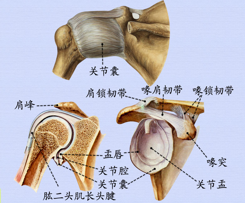 3.了解肩关节、肘关节和腕关节的组成、结构特点。