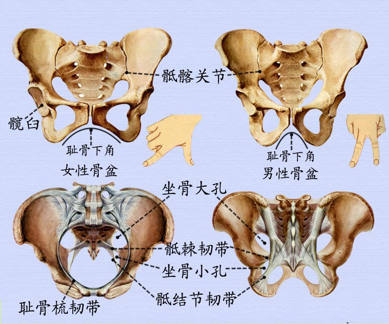 2.熟悉骨盆的构成,男、女骨盆的特点。