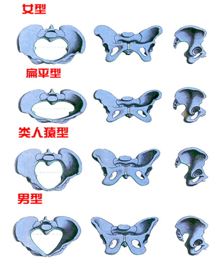 上述4种基本类型只是理论上的归类,临床所见多是混合型骨盆。骨盆的形态、大小除有种族差异外,其生长发育还受遗传、营养与性激素的影响。