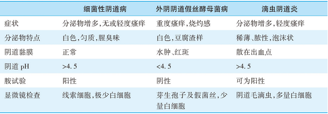 表18-2  细菌性阴道病与其他阴道炎的鉴别诊断