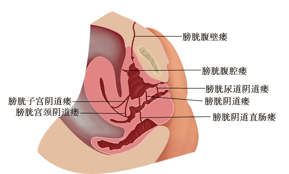 尿瘘指生殖道与泌尿道之间形成异常通道,尿液自阴道排出,不能控制。尿痿可发生在生殖道与泌尿道之间的任何部位,根据解剖位置分为膀胱阴道瘘(vesico-vaginal fistula)、尿道阴道瘘(urethro vaginal fistula)、膀胱尿道阴道瘘(vesico- urethro-vaginal fistula)、膀胱宫颈瘘(vesico-cervical fistula)、膀胱宫颈阴道瘘(vesico-cervical-vaginal fistula)、输尿管阴道(uretero-vaginal fistu)及膀胱子宫痿(vesico-uterine fistula)。