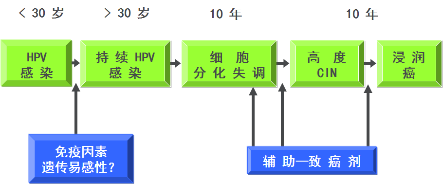 SIL和子宫颈癌与人乳头瘤病毒(human papilloma virus,HPV)感染、多个性伴侣、吸烟、性生活过早(<16岁)、性传播疾病、经济状况低下、口服避孕药和免疫抑制等因素相关。