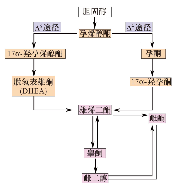 图3-4  性激素的生物合成途径示意图