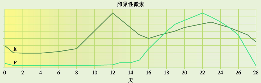 卵巢性激素分泌变化  E:雌激素;P:孕激素