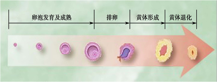 •卵巢周期历经卵泡的发育与成熟、排卵、黄体形成与退化。