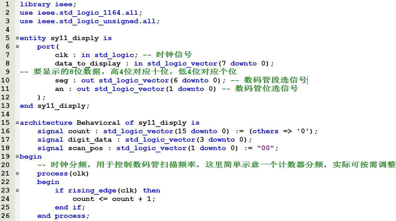 (2)计数器的1HZ计时时钟,由实验七的任务一修改获得,把原代码中的中间信号clk送到输出引脚clk1hz,作为计数器时钟。
