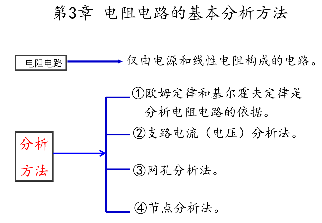 掌握支路电流分析法、网孔分析法、节点分析法列方程求解电路的电压和电流