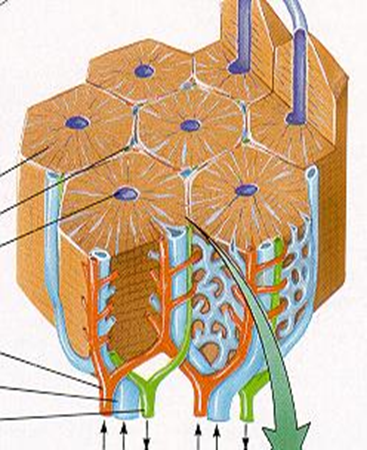 1.中央静脉:位于肝小叶中央,是肝血窦在肝小叶中轴汇集成的一条多孔静脉,管壁不完整,血窦中血液均流向中央静脉。