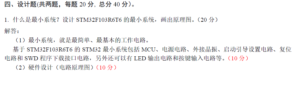 整个最小系统我就考了44分。这是我讲这个stm 32,13年来最简单的一套考卷,最小系统大概讲了至少六节课,我就考了44分。并且一再的说了要考,所以考卷考不到40分的,不知道怎么回事?