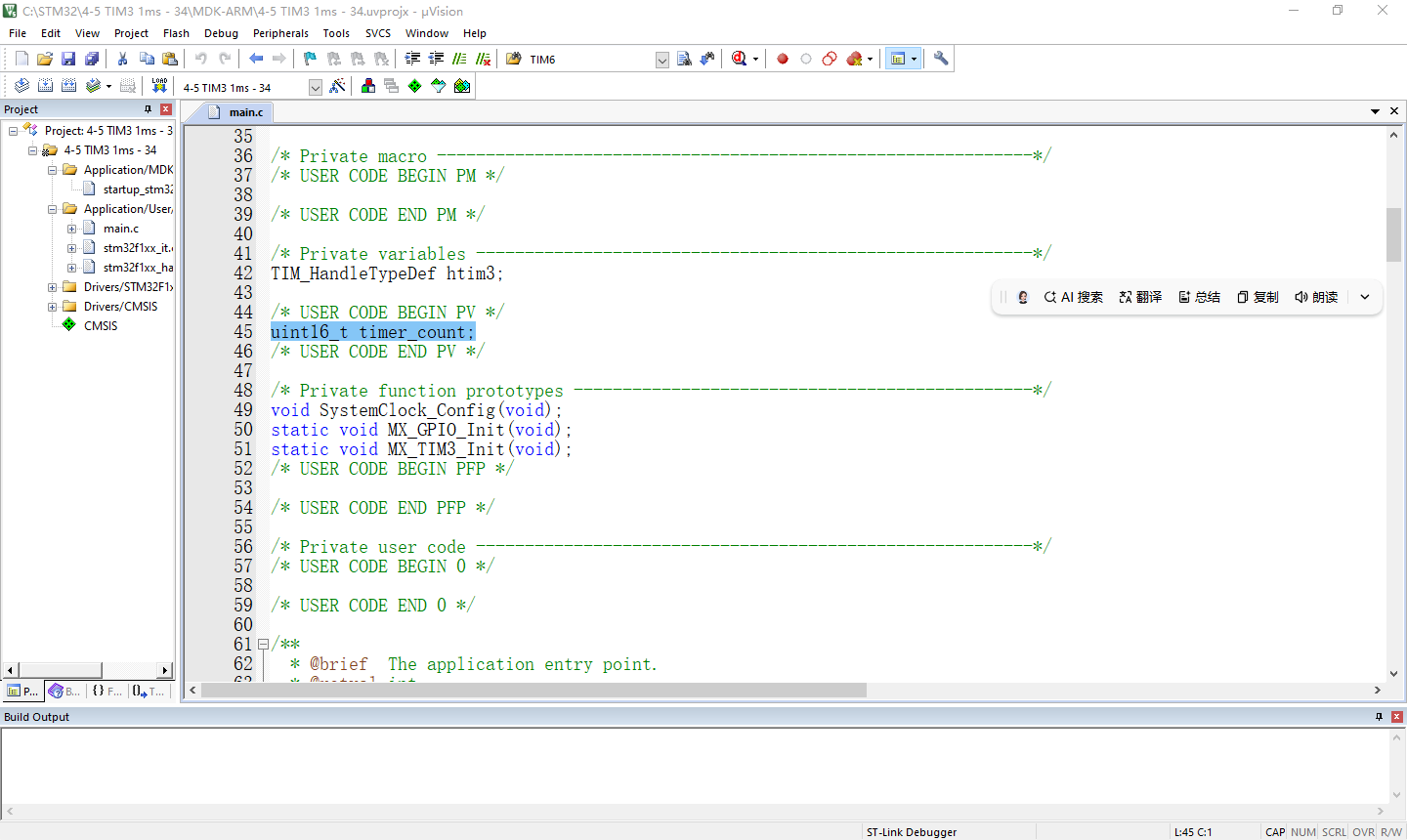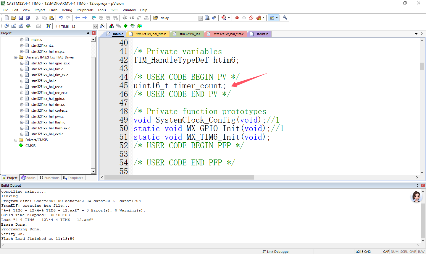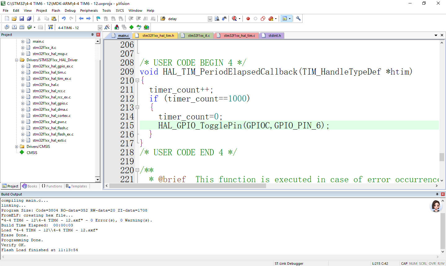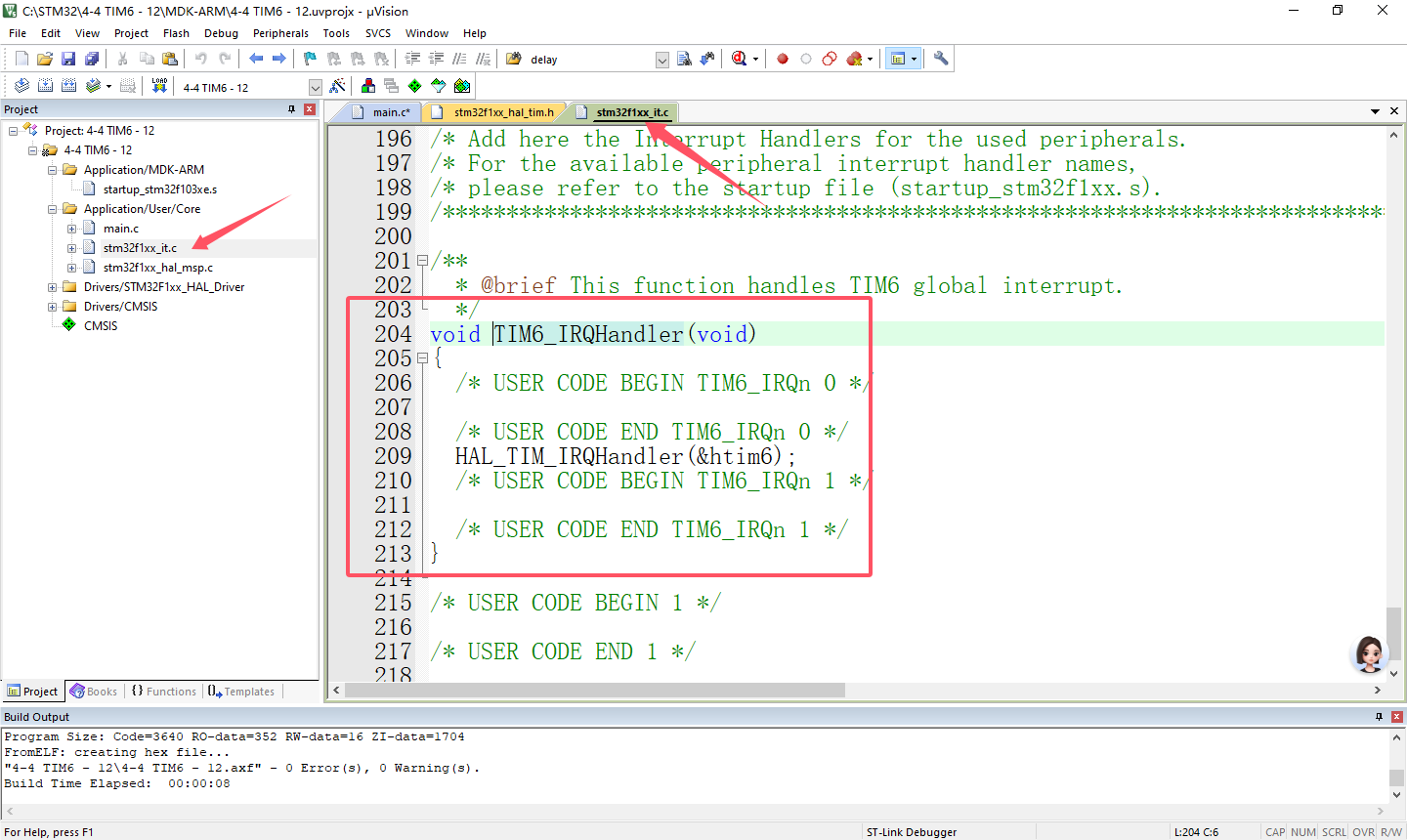 实验4-4 基本定时器TIM6定时1ms(HAL库)