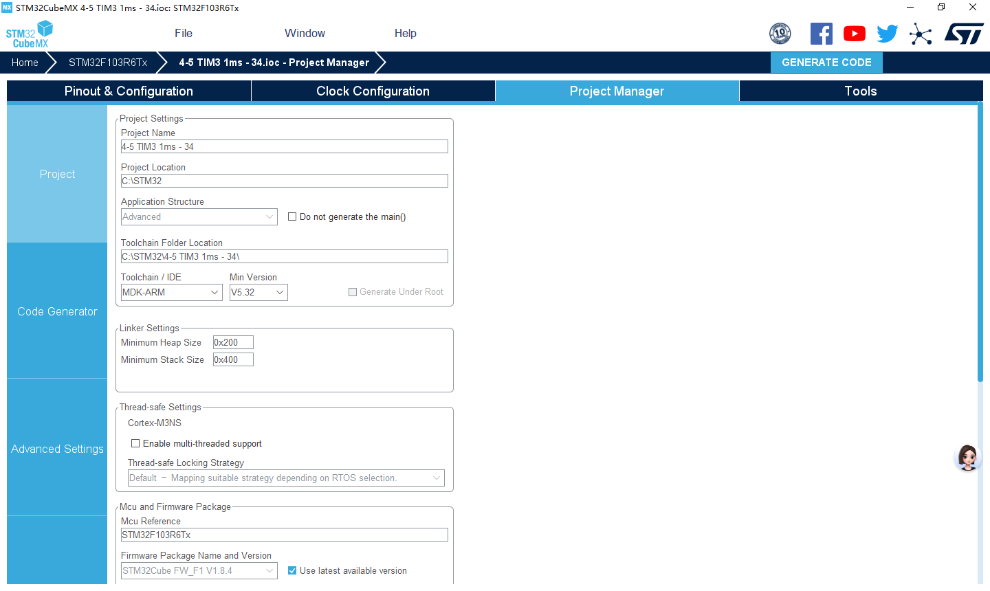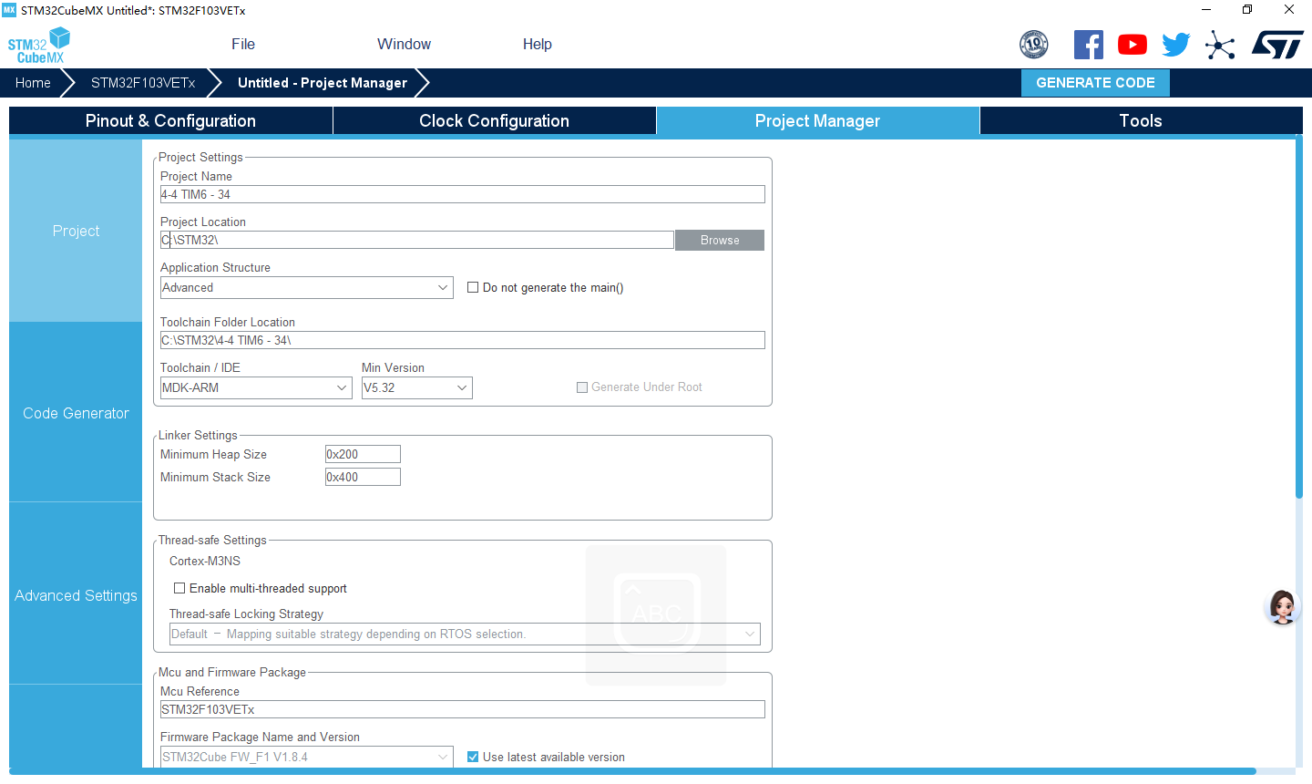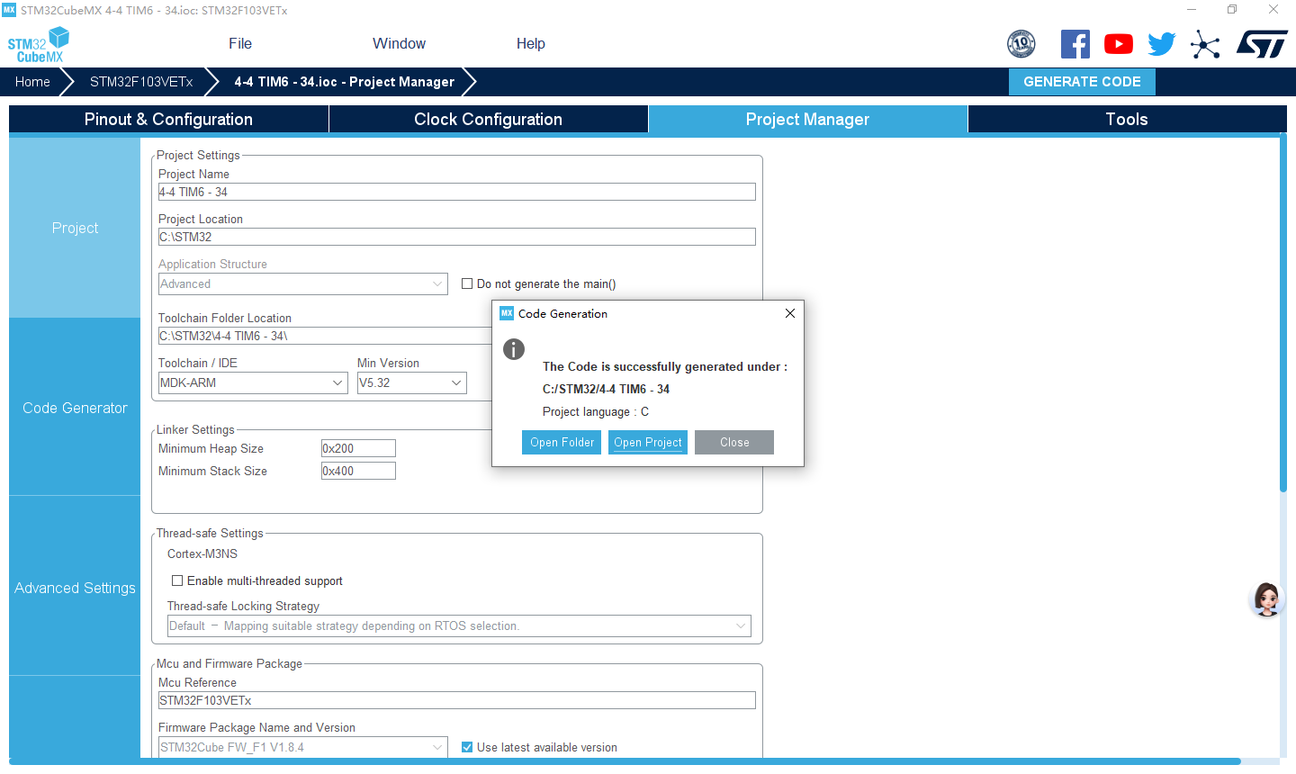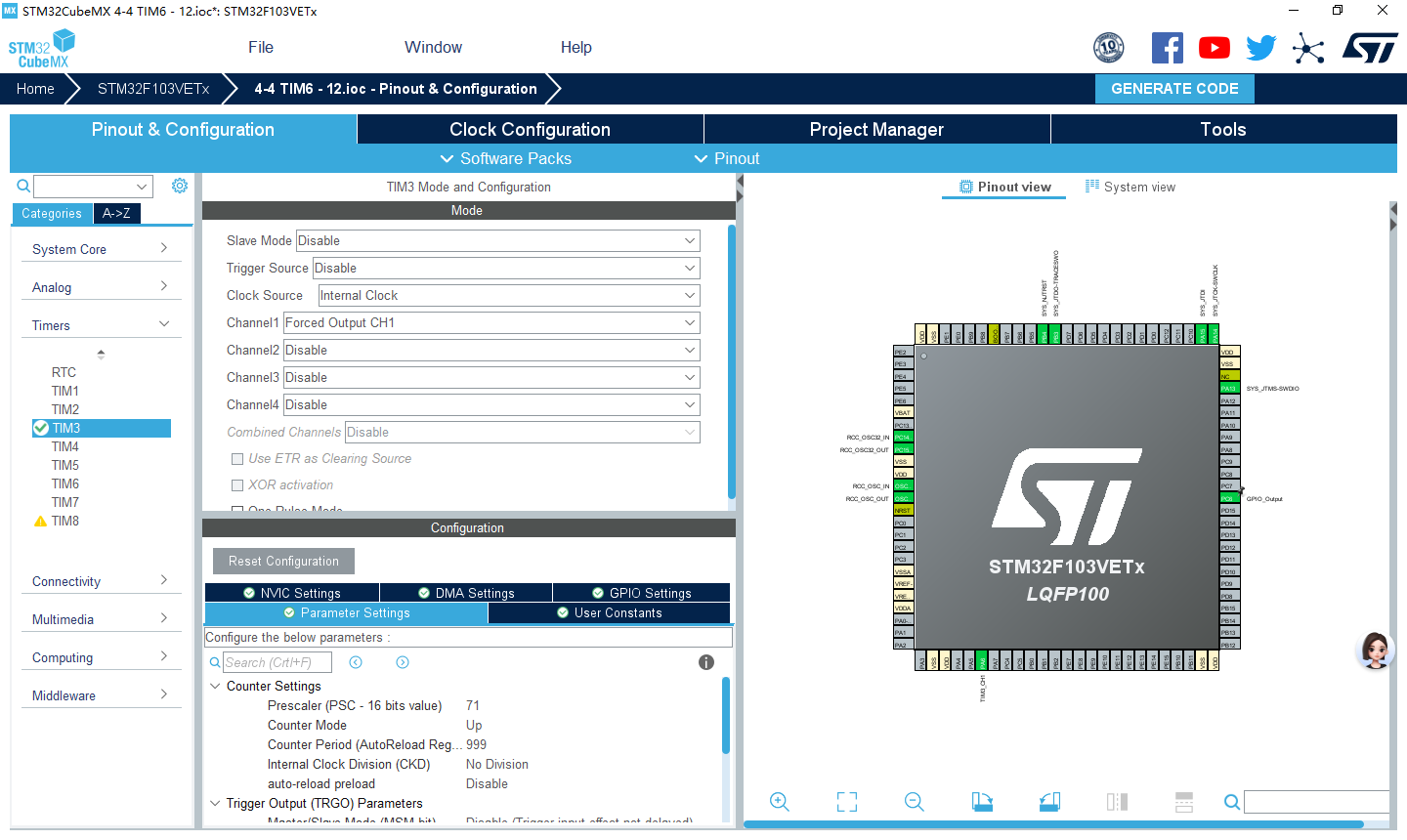 实验4-4 基本定时器TIM6定时1ms(HAL库)
